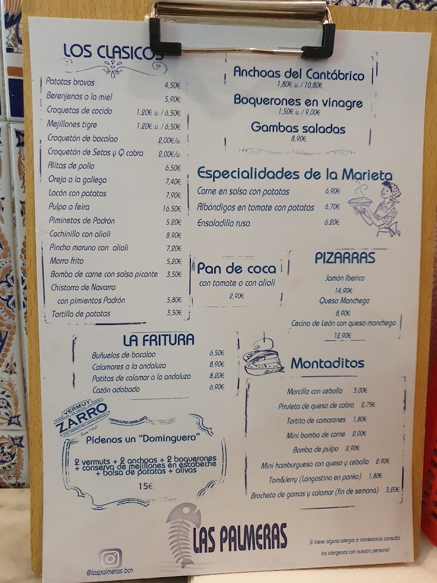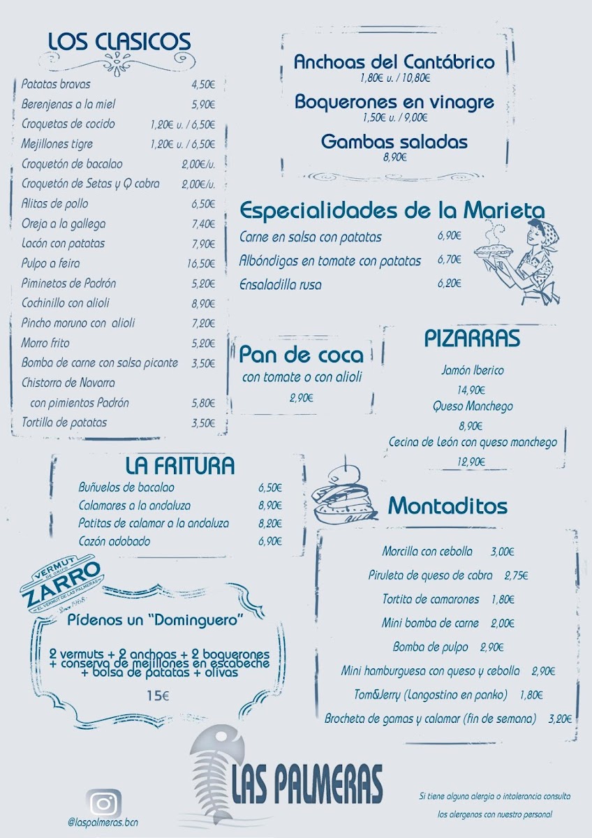 Discover the vibrant culinary landscape at Las Palmeras - La Marina, nestled in the heart of Sants-Montjuïc, Barcelona. Renowned for its delightful tapas, this restaurant offers a menu that brilliantly showcases the flavors of Spain. Highlights include anchoas del cantábrico, indulgent croquetas in various flavors, and the unique eggplant fried in honey with goat cheese. Customer reviews consistently speak to the generous portion sizes, and the friendly service enhances every dining experience.