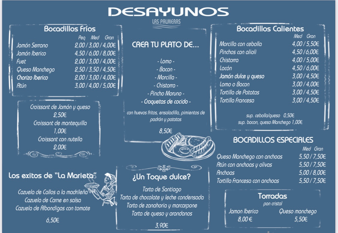 Whether you're enjoying the classic cochinillo with alioli or the piquant bomba de carne, the food here is consistently praised for its freshness and flavor. Helmed by passionate staff like Fernando, you’ll receive enthusiastic guidance through the menu. With affordable prices and quick, attentive service, Las Palmeras is not just a restaurant; it’s a community hub where exceptional food and warm hospitality come together.